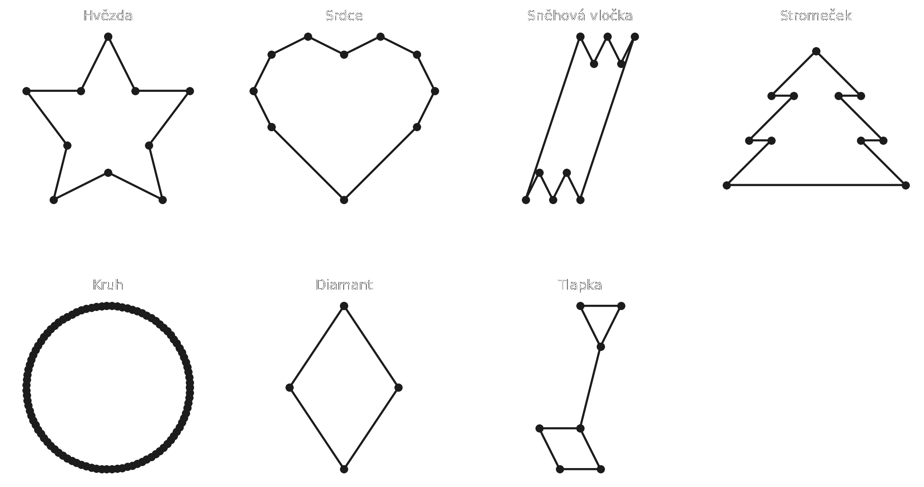 - Smiley (usmívající se obličej): Zábavný a pozitivní tvar.
